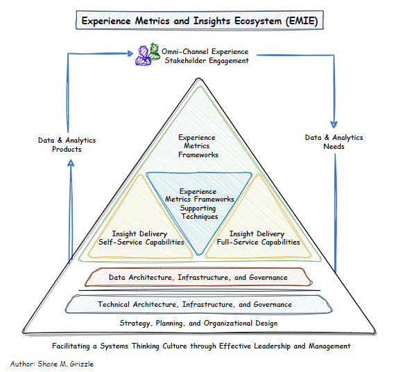 As a brief introduction, the EMIE is a structured framework I introduced to help illustrate my concepts and professional observations geared to foster cross-functional collaboration and data-driven decision-making in large organizations (i.e., tens of thousands of employees). My primary focus is enabling these large organizations to deliver a cohesive and integrated customer journey by leveraging unified metrics, supporting techniques, and effective insight delivery. However, the content is likely to benefit other size companies and individual scenarios.